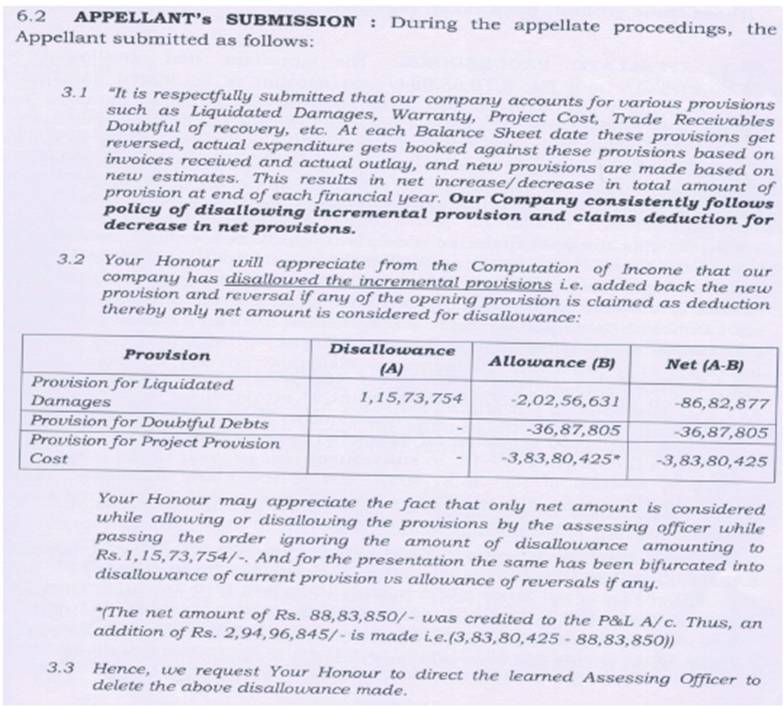 “6.3 I have carefully considered the facts of the case and submission filed by the appellant. I agree with the appellant's contention that Appellant Company consistently follows policy of disallowing incremental provision and claims deduction for decrease in net provisions. Further, from verification of computation of income it is seen that the appellant company has disallowed the provisions of these expenses in earlier years. The Appellant has submitted that similar treatment was given to project provision costs, liquidated damages, doubtful debts in AY 2020-21 and AY 2021-22 which has been accepted by the learned AO, Assessment Unit, NFAC. Similarly it is accepted in earlier years also.