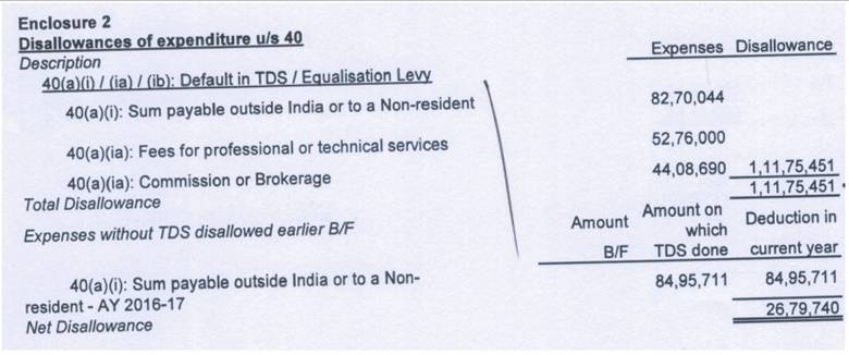 1.2 Above mentioned amounts referred to the provisions amounts / accrued expenses, hence disallowed under section 40(a)(i) and 40(a)(ia) under clause 21(b) of Tax Audit Report and the same is reflected in return of income under "Schedule BP: Computation of income from business or profession, Part A, Serial no.16" on page no.86 ……”
