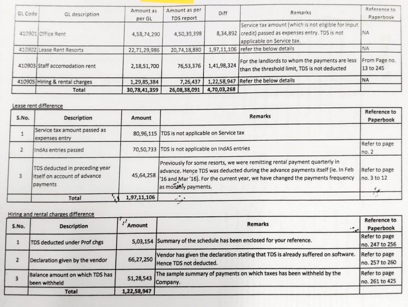9. The Ld. AR submitted that the assessee company is engaged in the business of operating hotels and resorts across India and payroll transactions are voluminous. The Ld. AR further submitted that the salary payments consist of various categories such as salaries on which TDS is made, salaries below the TDS threshold, bonus, stipends expenses, statutory contribution etc. The Ld. AR also submitted that substantial portion of the salary expenses are not subject to TDS and the difference in the salary is mainly attributable to the salary below the TDS threshold limit. The Ld. AR drew our attention to the submission made before the lower authorities with regard to the employee wise breakup of salary (page 407 to 411 of paper book). The Ld. AR also submitted additional evidences in support of the reconciliation for the difference of salary and prayed for the admission of the same.